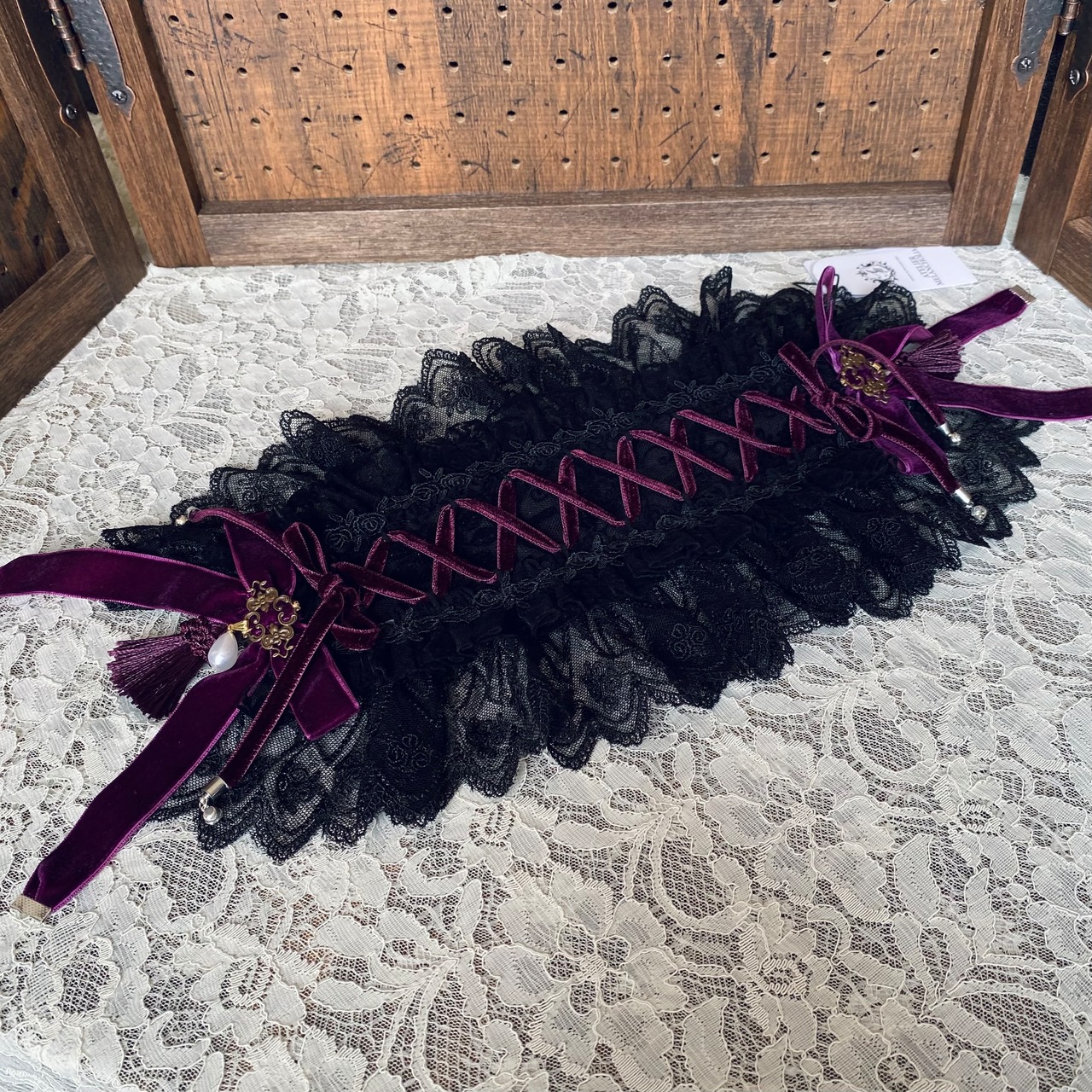 ベルベットレースアップフロッキーヘッドドレス 黒×バーガンディ パープル