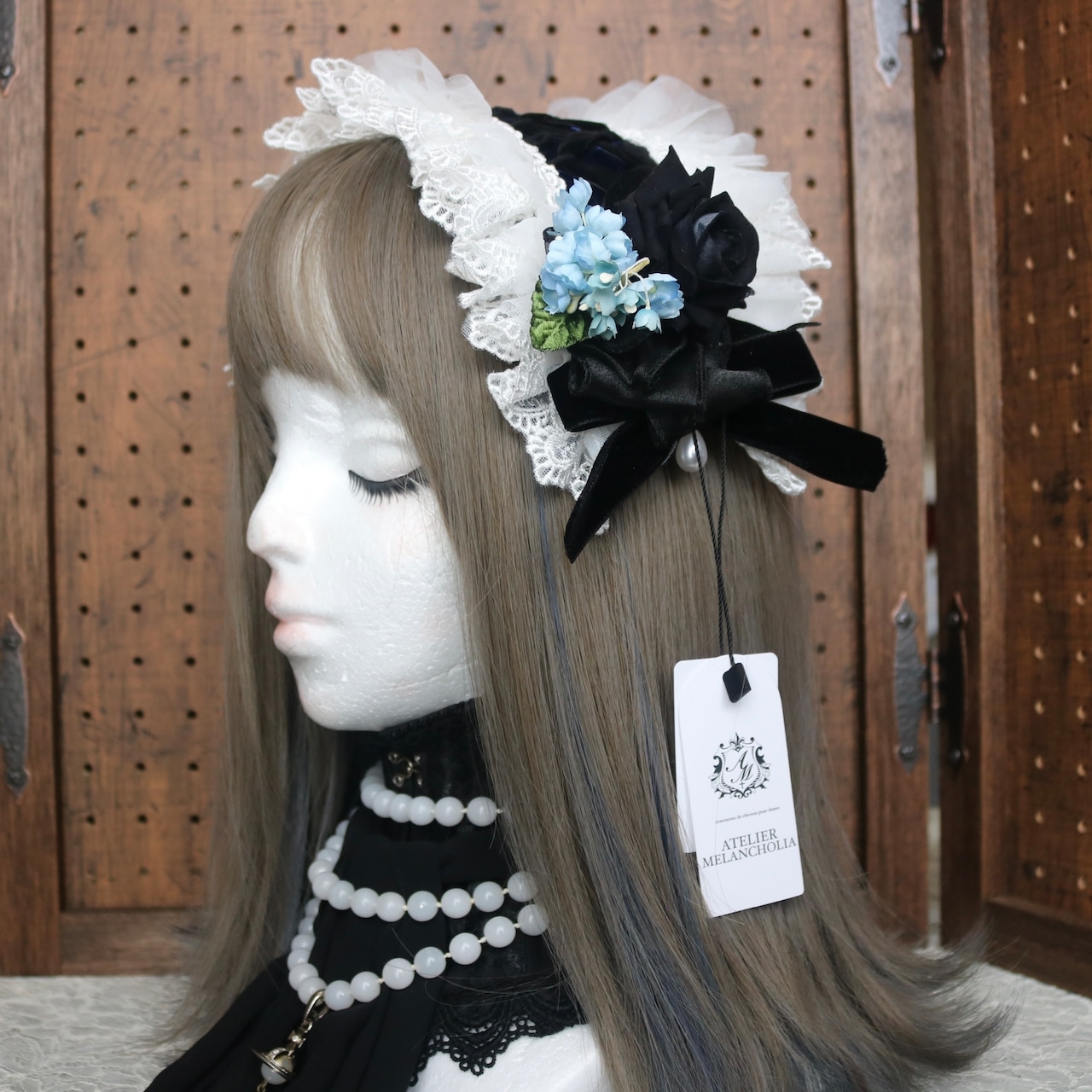 深い紺色のベルベットが高級感を醸し出すヘッドドレス