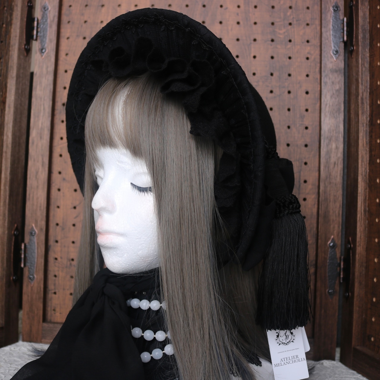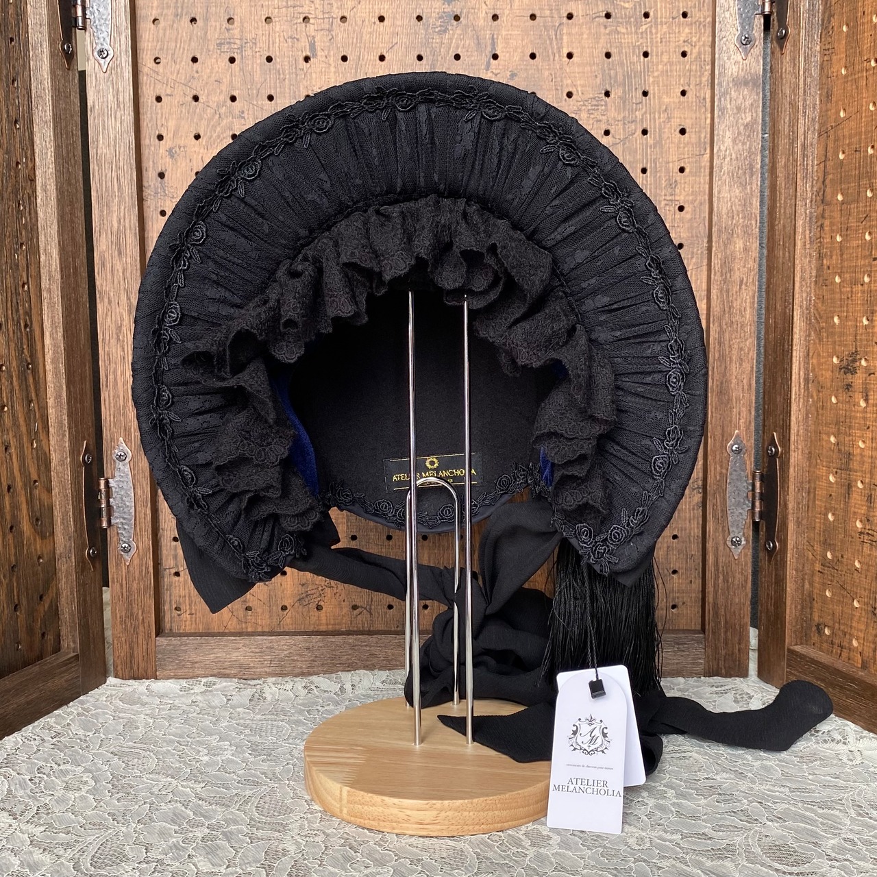 Clair de Lune クレール・ド・リュンヌ ハット型ボンネット 黒×黒